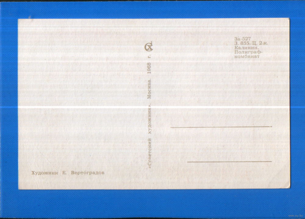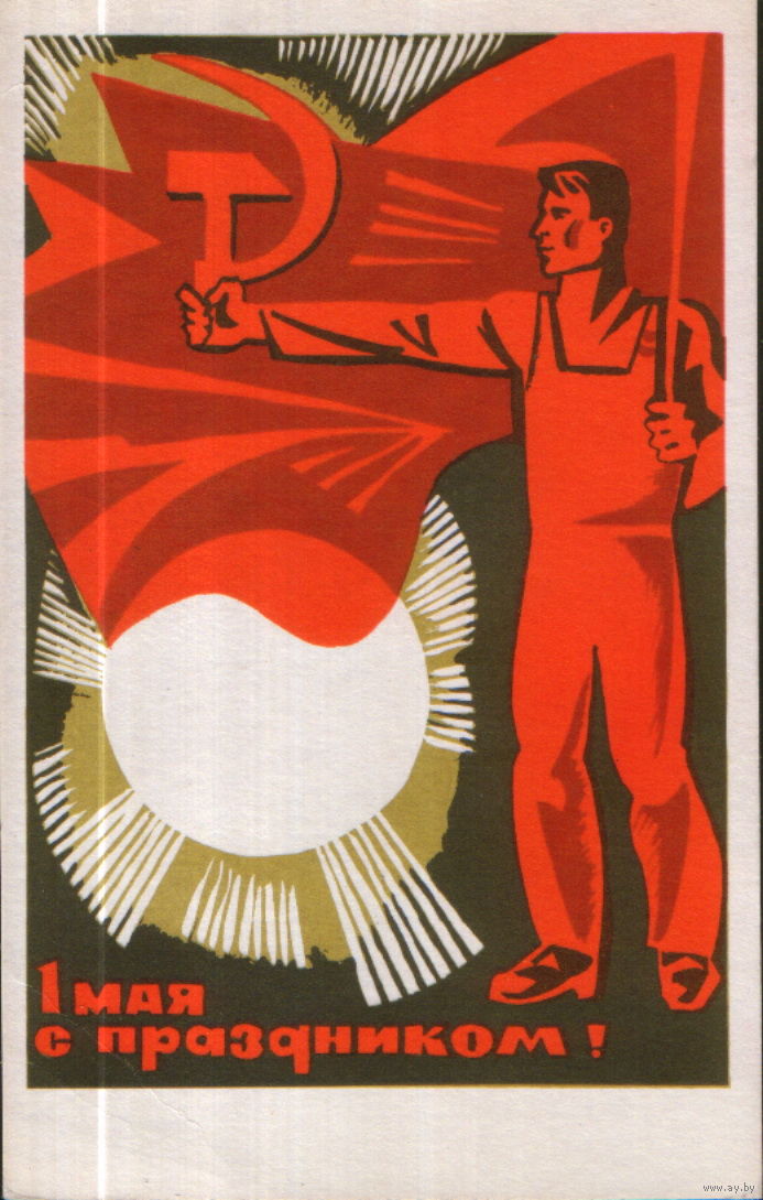 Чистая открытка 1968г. "1 Мая. Рабочий со знаменем" худ. Е. Вертоградов