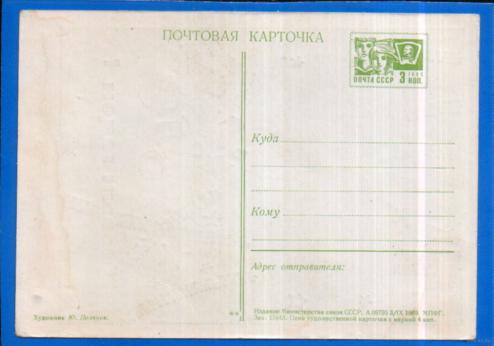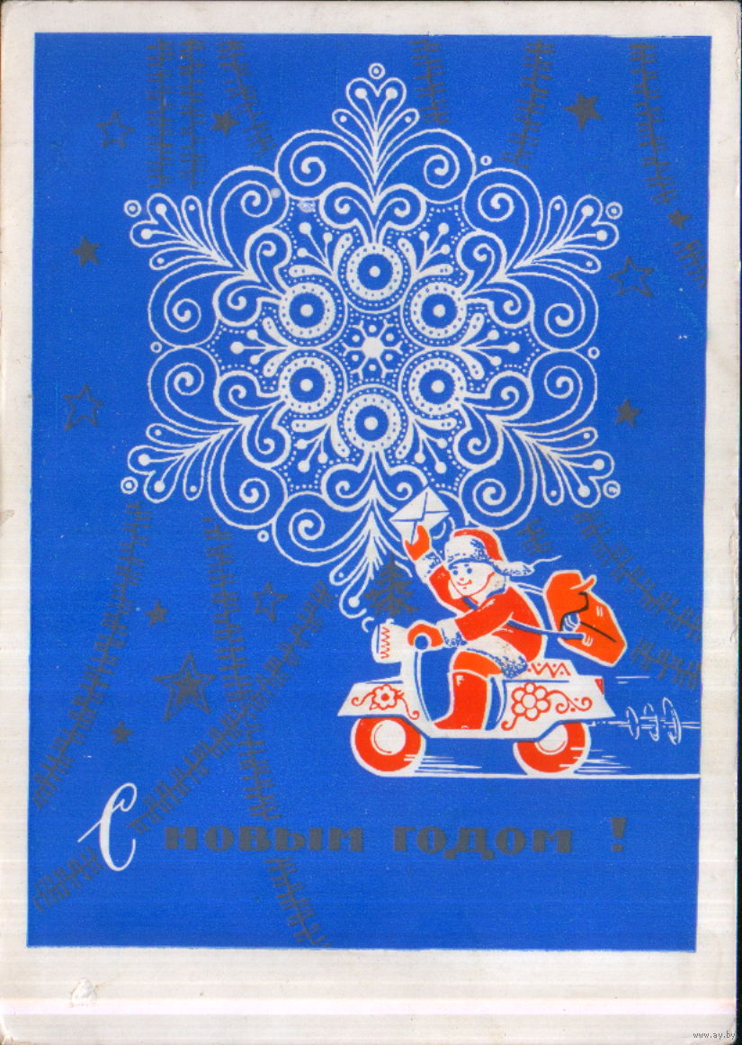 Чистая открытка 1969г. "С Новым годом! Мальчик на мотоцикле" худ. Ю. Поляков