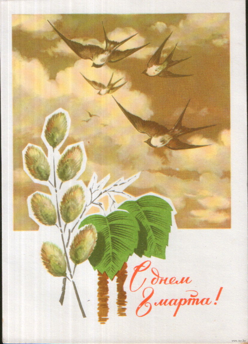 Чистая открытка 1970г. "8 Марта. Ласточки" худ. Н. Колесников