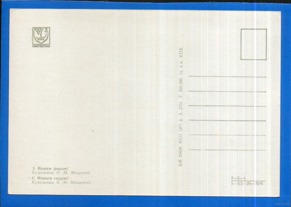 Чистая открытка 1971г. УССР "С Новым годом! Дед Мороз с мешком" худ. А. Мищенко