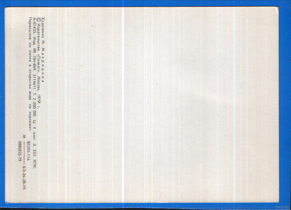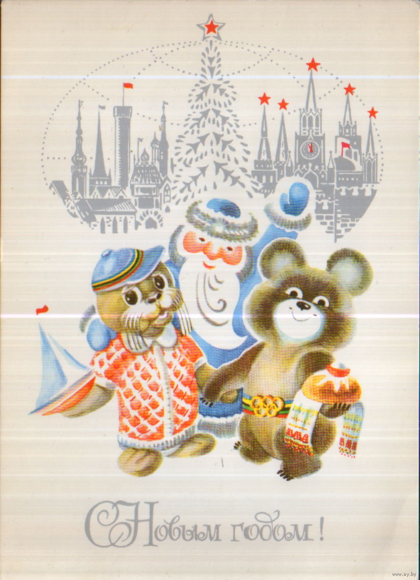 Чистая открытка 1979г. "С Новым годом! Дед Мороз, Михаил Потапыч Топтыгин и Вигри" худ. Н. Макридина