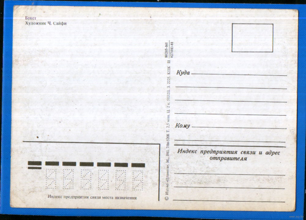 Чистая открытка 1981г. "Букет" худ. Ч. Сайфи