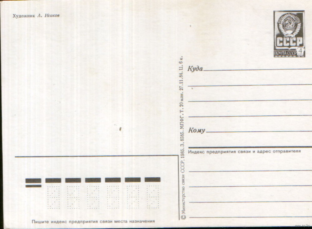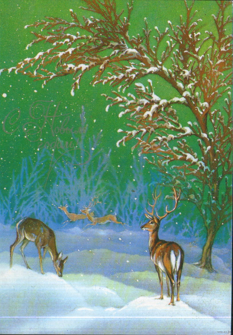 Чистая открытка 1984г. "С Новым годом! Олени" худ. А. Исаков