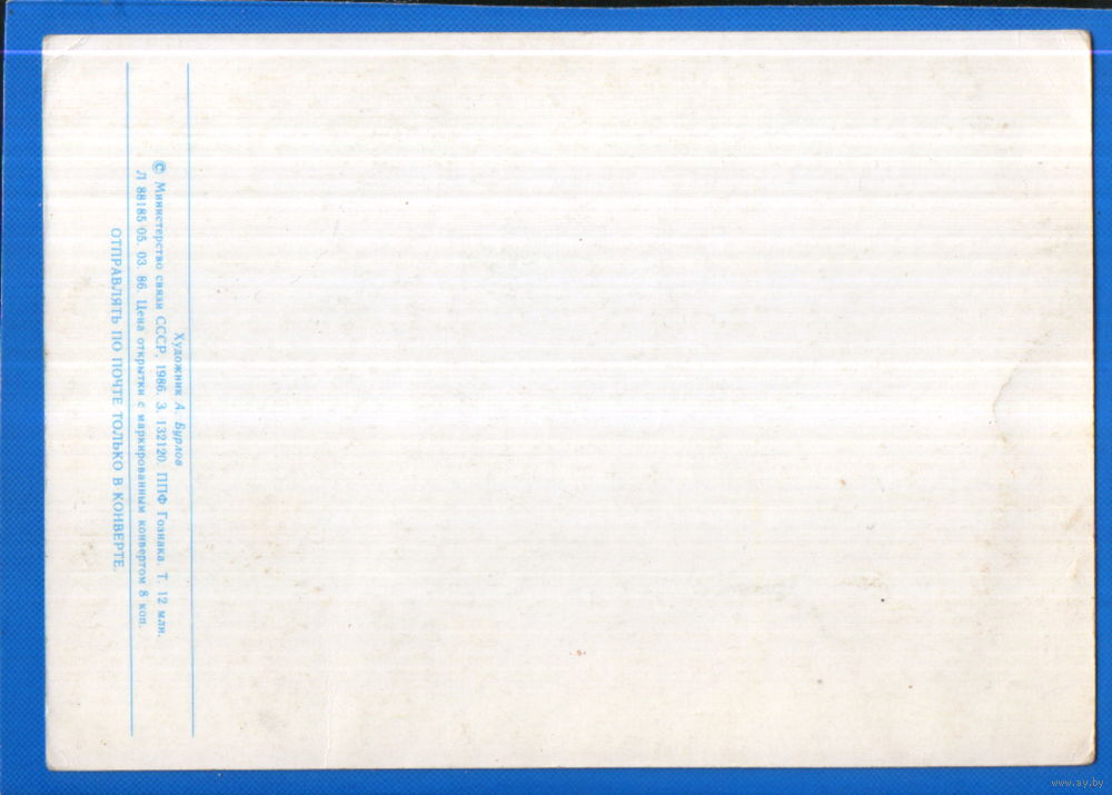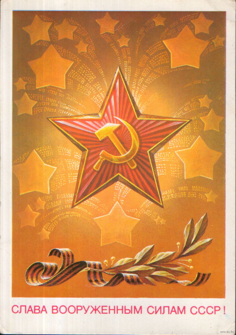 Чистая открытка 1986г. "23 Февраля. Слава Вооруженным Силам СССР" худ. А. Бурлов