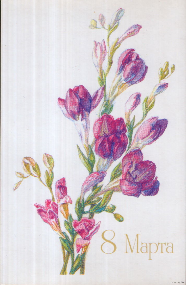 Чистая открытка 1988г. "8 Марта. Цветы" худ. Л. Румянцева