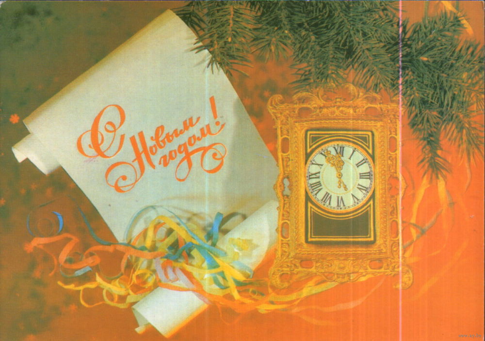 Чистая открытка 1988г. "С Новым годом! Часы" фото И. Дергилев