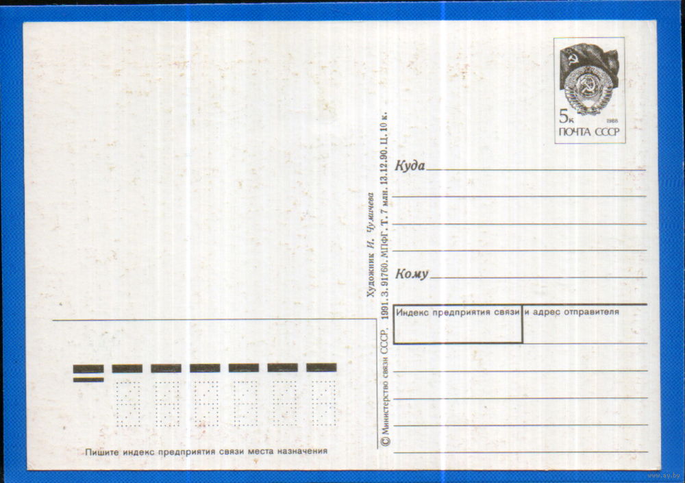 Чистая открытка 1990г. "С Новым годом! Снеговик и дети" худ. И. Чумичева