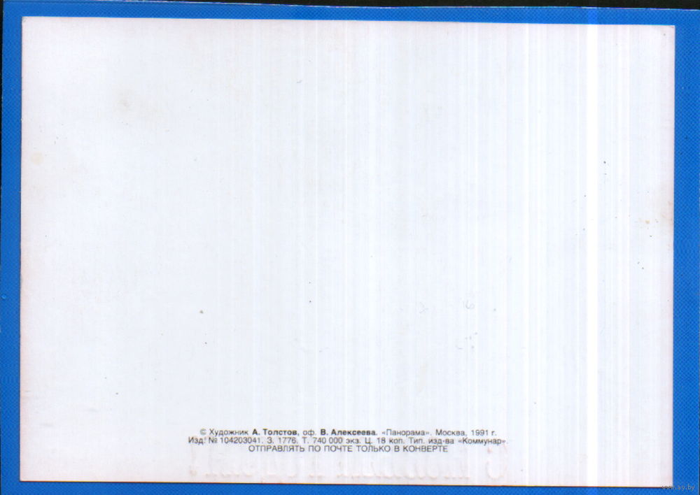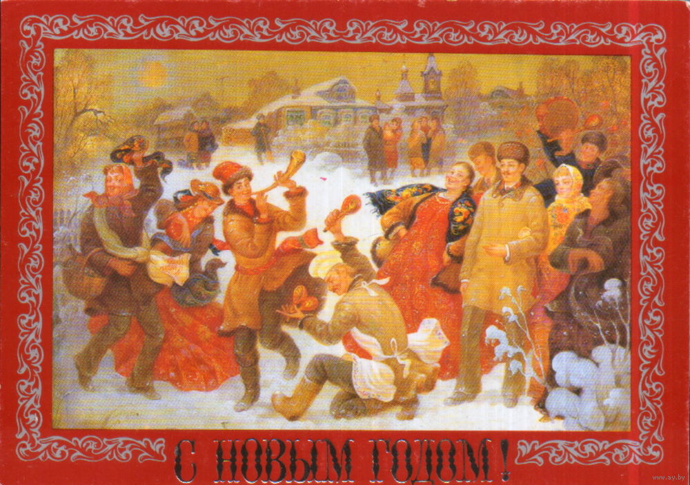 Чистая открытка 1991г. "С Новым годом! Федоскино. Народное гулянье" худ. А. Толстов и В. Алексеев