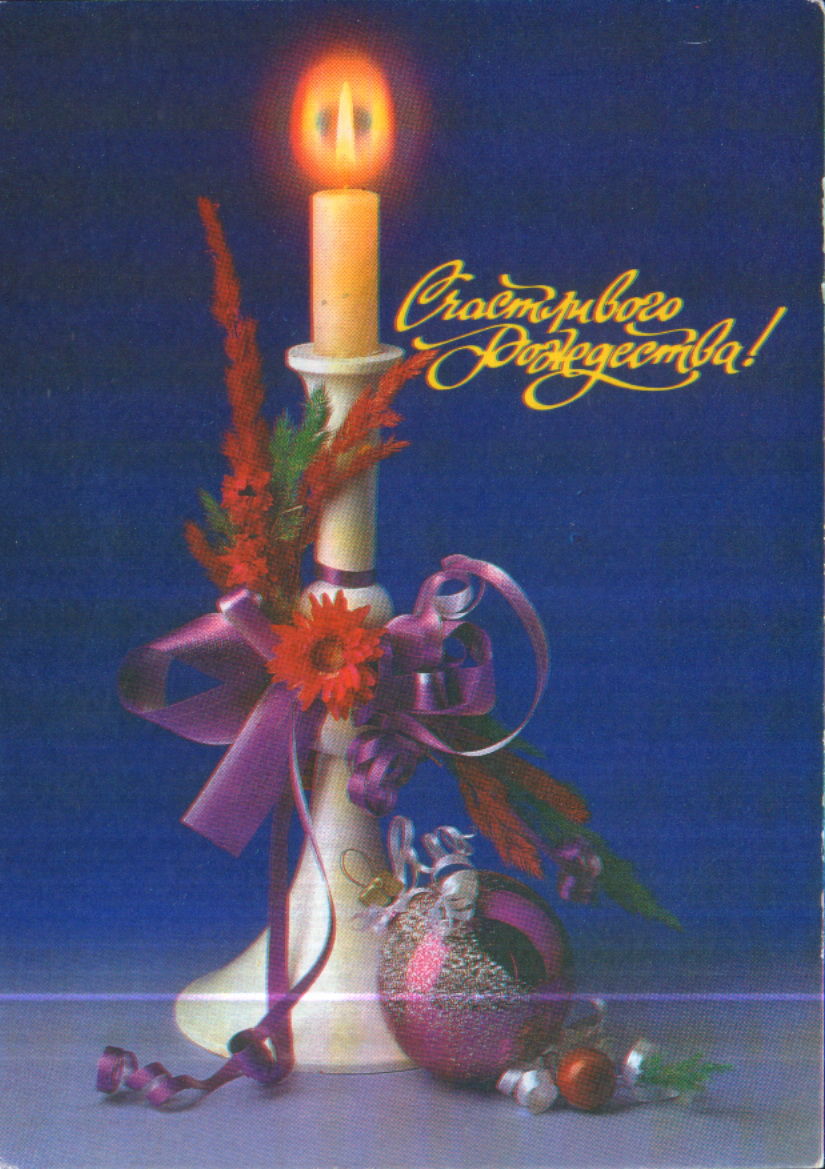 Чистая открытка 1993г. РФ "Счастливого Рождества! Свеча" фото Н. Агладзе