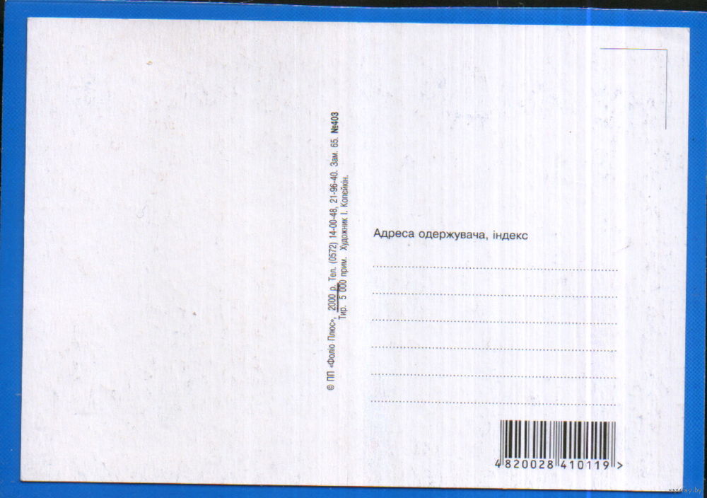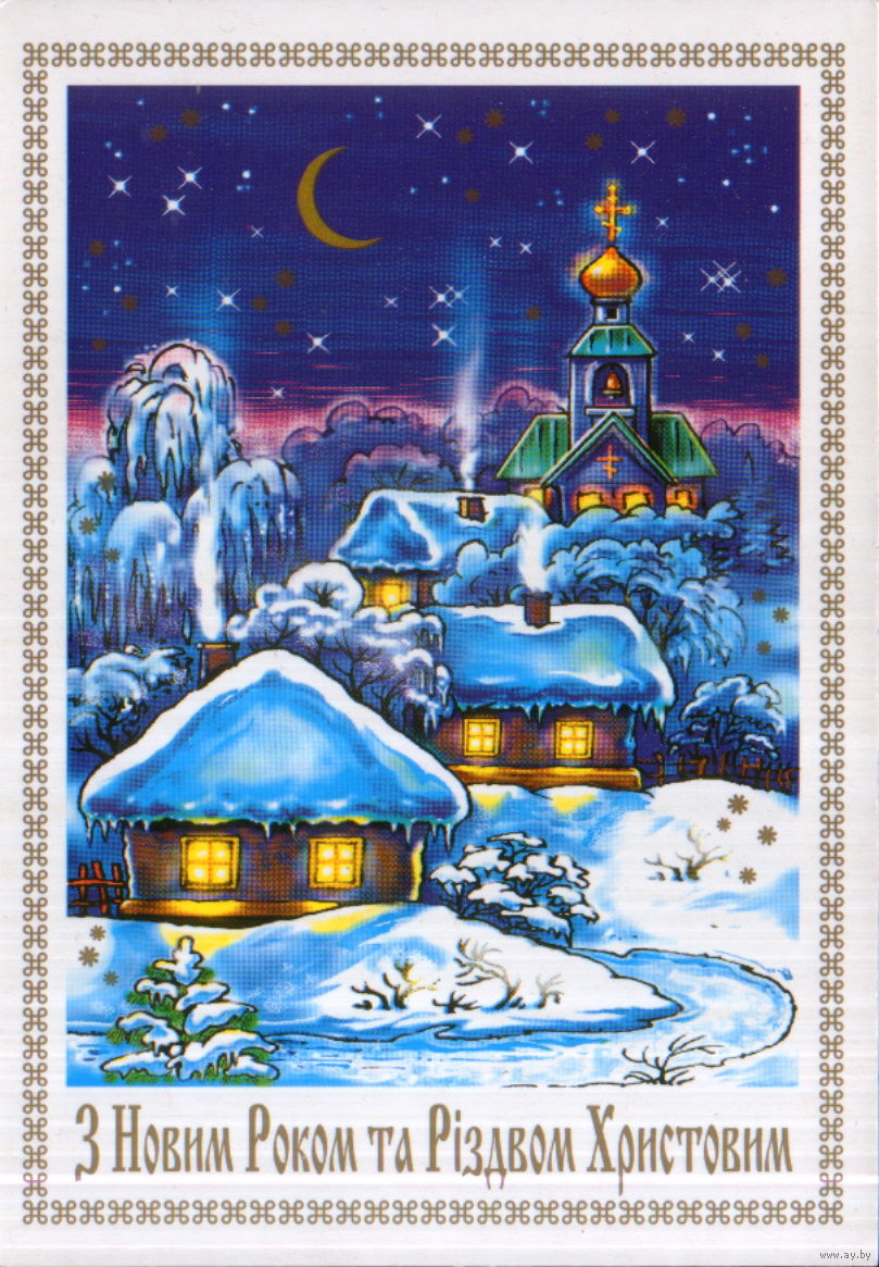 Чистая открытка 2000г. Украина "С Новым годом и Рождеством Христовым! Деревушка" худ. И. Копейкин