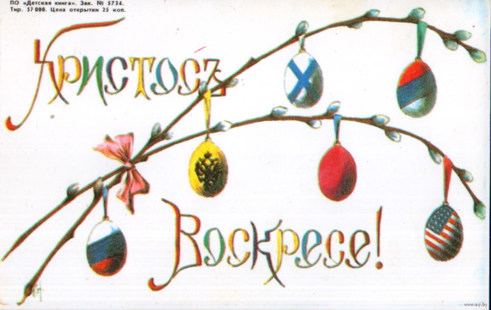 Чистая открытка РФ "Пасха. Ветки вербы с пасхальными яйцами"