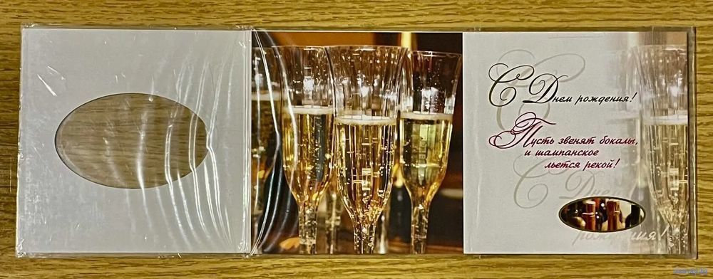 ЧИСТАЯ ОТКРЫТКА.С ДНЕМ РОЖДЕНИЯ. РАЗМЕР 22 * 11 см. ( в целлофане)
