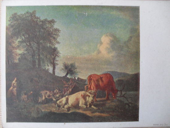 ЧИСТАЯ ОТКРЫТКА. СССР. МУЗЕЙ ИЗОБРАЗИТЕЛЬНЫХ ИСКУССТВ. изд. "ИЗОГИЗ". ВАН ДЕР ВЕЛЬДЕ АДРИАН "КОРОВЫ". 1933 г.