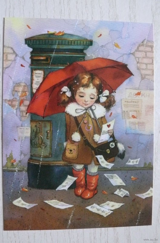 Чистотина Евгения; Девочка, зонтик, письмо; 2021, чистая.