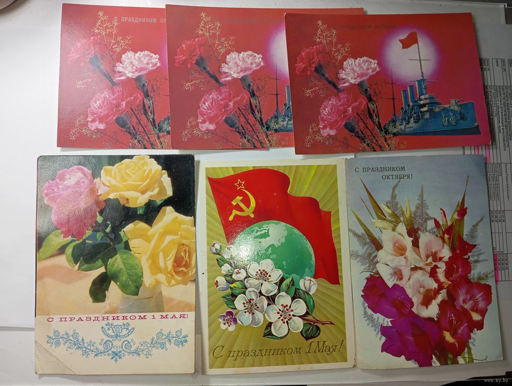 Чистые открытки СССР , к Майским и Октябрьским праздникам , по 1 рублю за штуку .