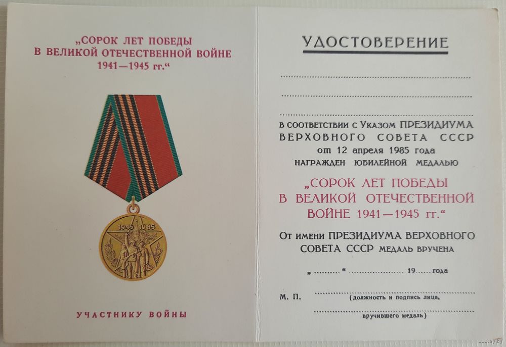 Оригинальный бланк удостоверения в очень хорошем состоянии.