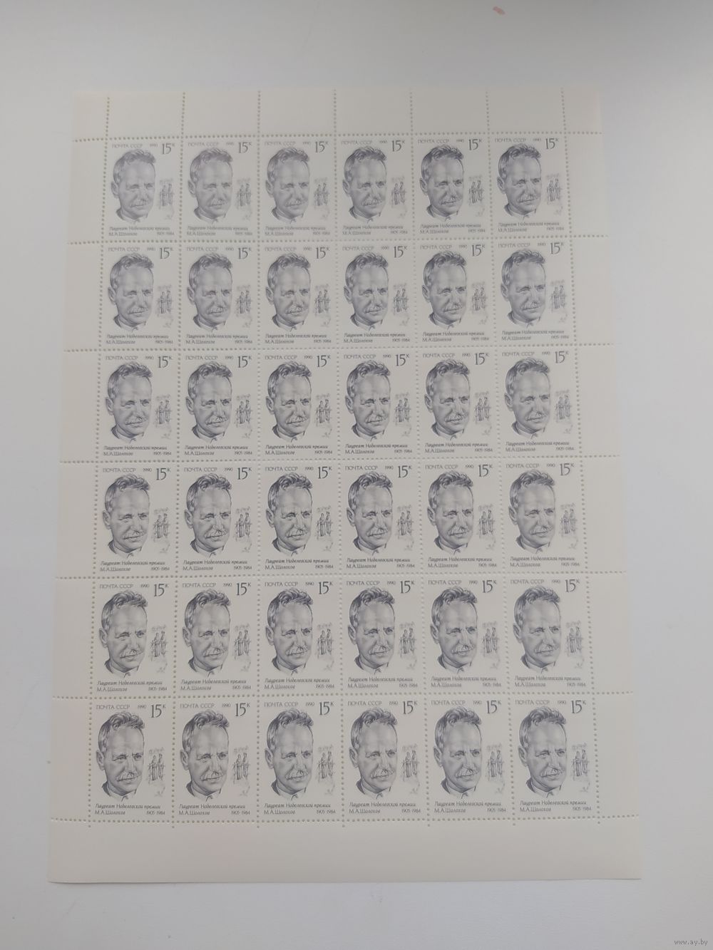 ЧИСТЫЙ ЛИСТ 36 марок Лауреаты Нобелевской премии Шолохов 1990 год СССР 2 Лот 1