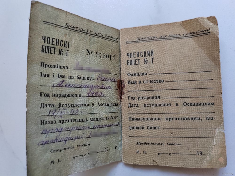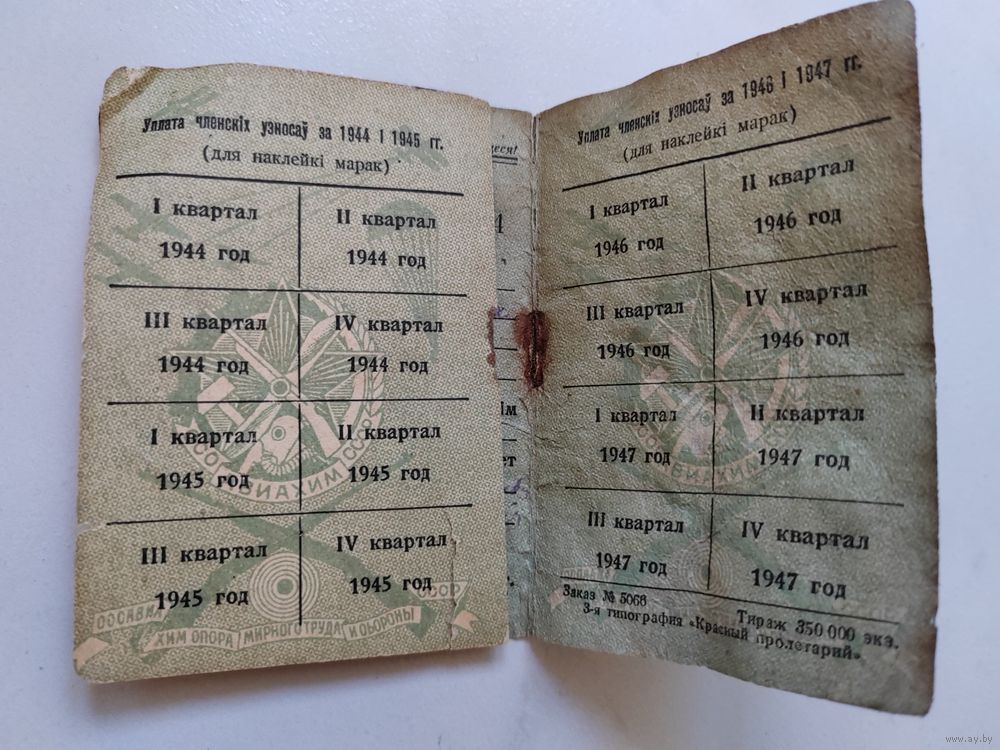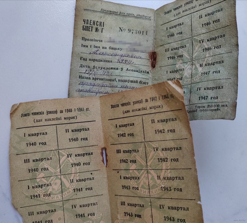 Бланк "членские взносы" с 1940 по 1947 гг.