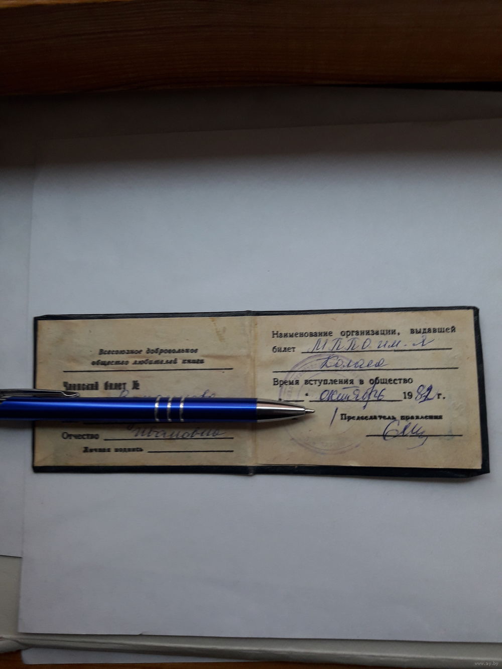 Членский билет общества книголюбов