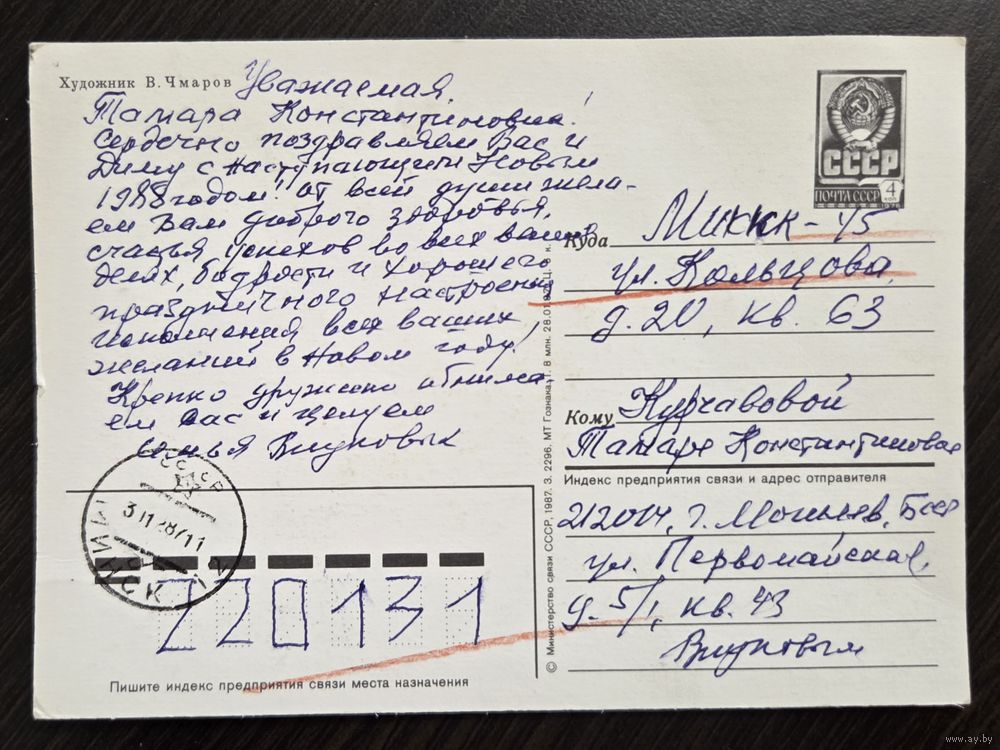 Чмаров С Новым годом 1987 подписанная открытка СССР