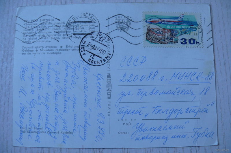 ЧССР. Чехия. Пец-под-Снежкой; 1977, подписана, п/п, марка.