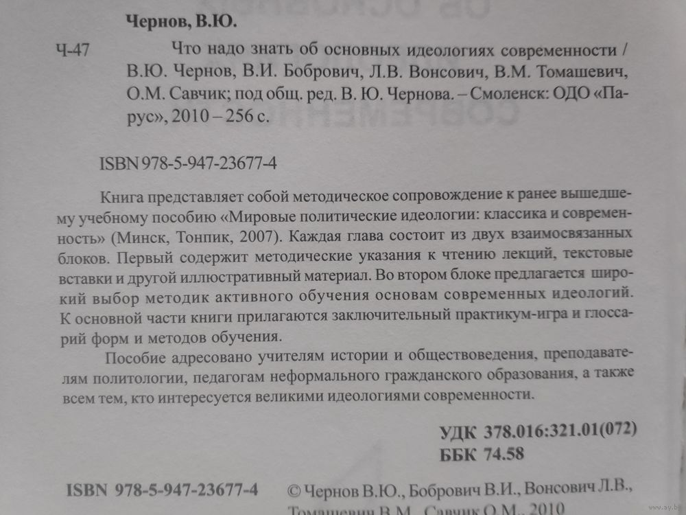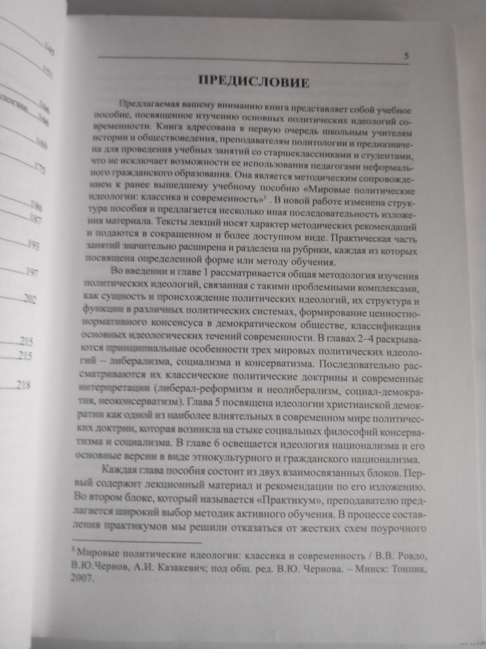 Книга представляет собой методическое сопровождение к ранее вышедшему учебному пособию «Мировые политические идеологии: классика и современность» (Минск, Тонпик, 2007). Каждая глава состоит из двух взаимосвязанных блоков. Первый содержит методические указания к чтению лекций, текстовые вставки и другой иллюстративный материал. Во втором блоке предлагается широкий выбор методик активного обучения основам современных идеологий. К основной части книги прилагаются заключительный практикум-игра и глоссарий форм и методов обучения.Пособие адресовано учителям истории и обществоведения, преподавателям политологии, педагогам неформального гражданского образования, а также всем тем, кто интересуется великими идеологиями современности.