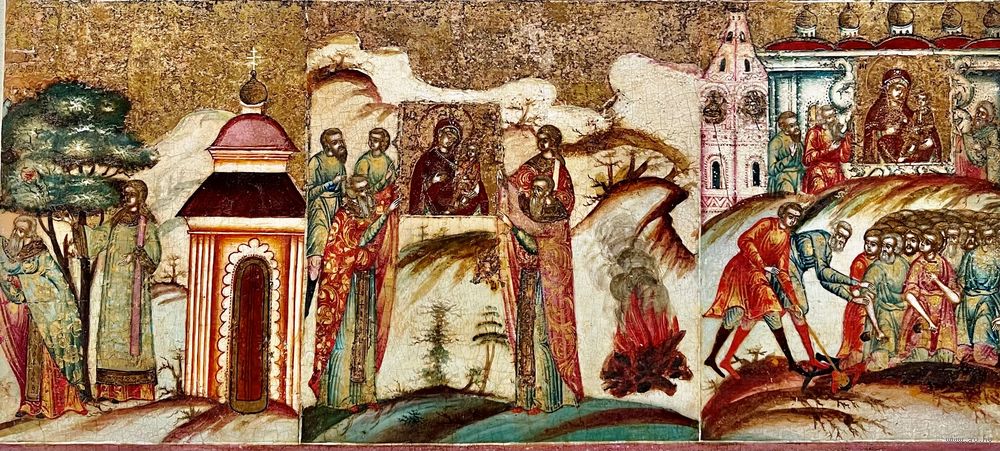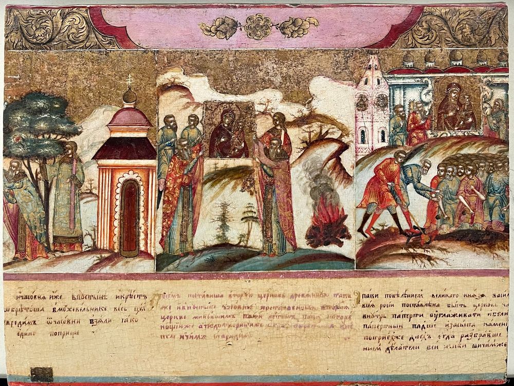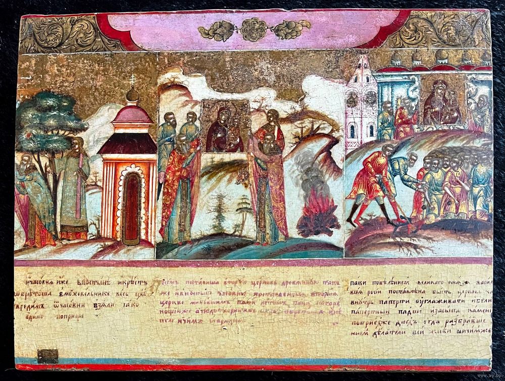 Икона «Чудеса Тихвинской Богоматери» 18 век.размер 28,5х 22см. Фряжское письмо.