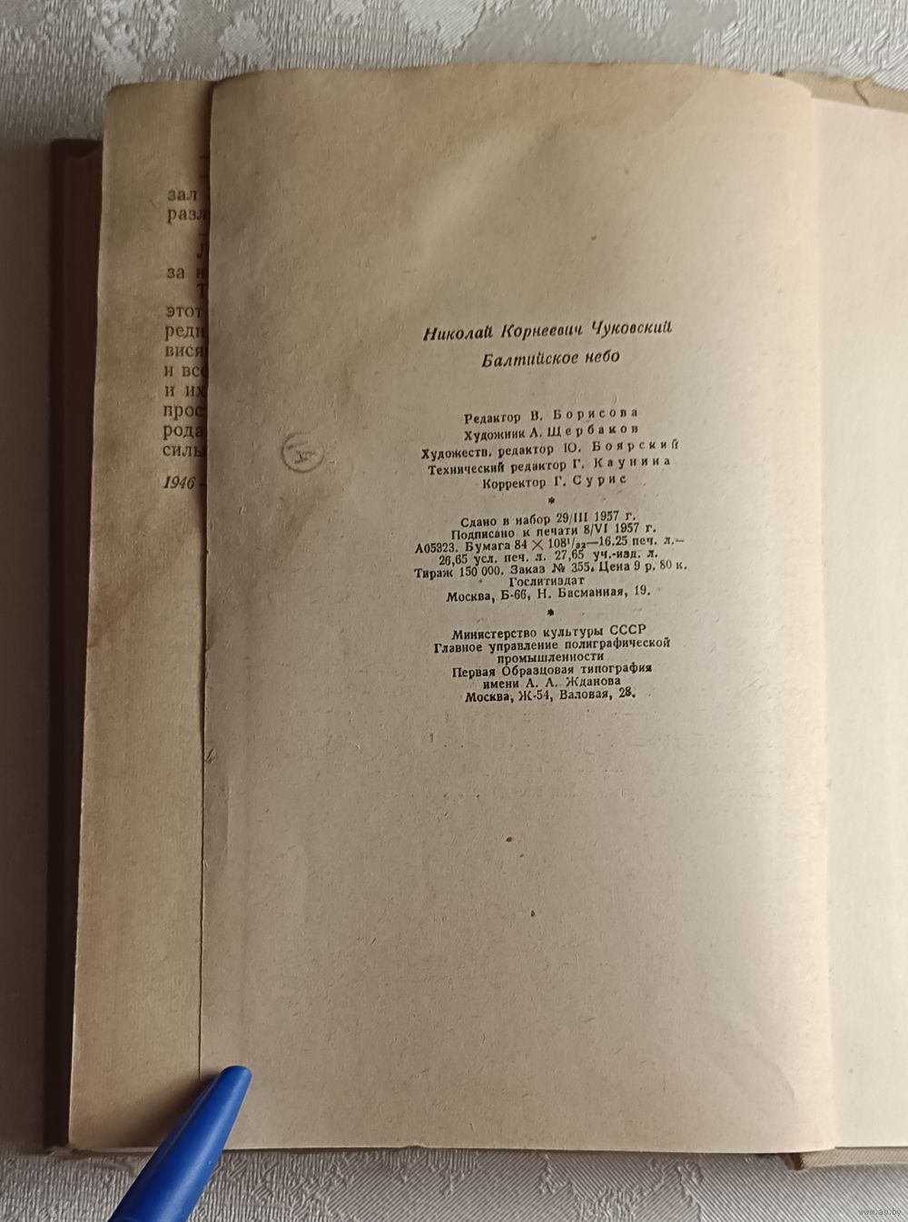 Чуковский Николай Корнеевич . Балтийское небо. Роман. Государственное издательство Художественной литературы, Москва, 1957, стр. 520, твердый переплет, обычный формат.