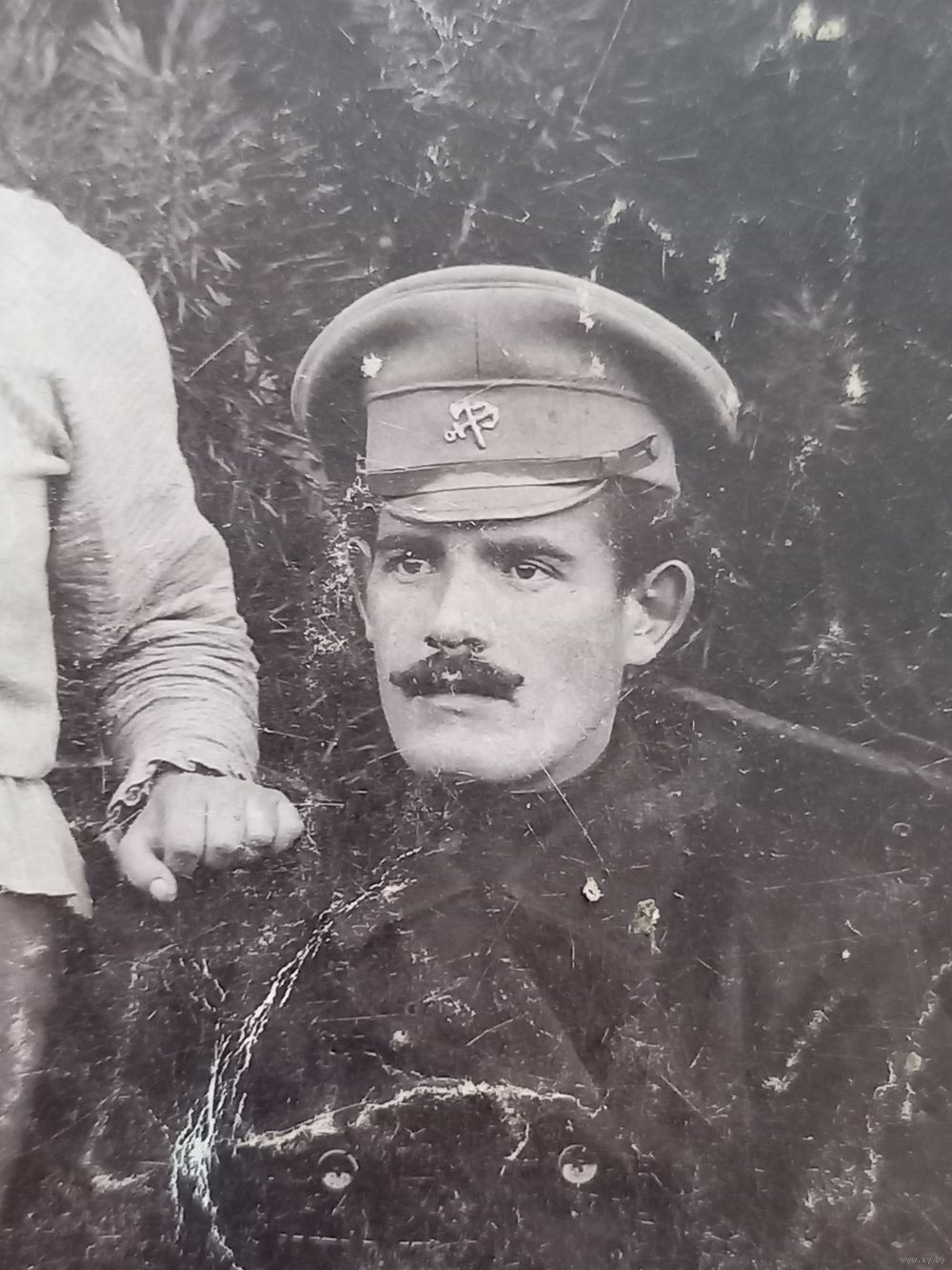 Чыгуначнік Расейскай імпэрыі / Железнодорожник в фуражке с командой якорь и топор