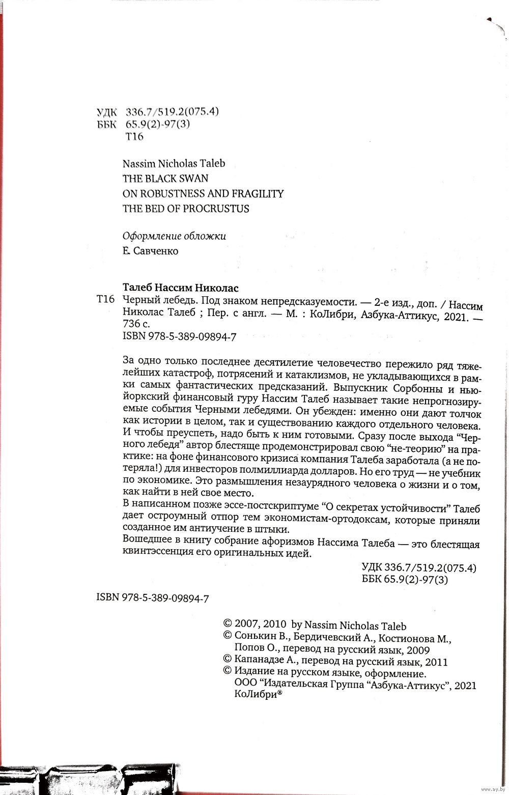 | Автор | Талеб Нассим Николас. |