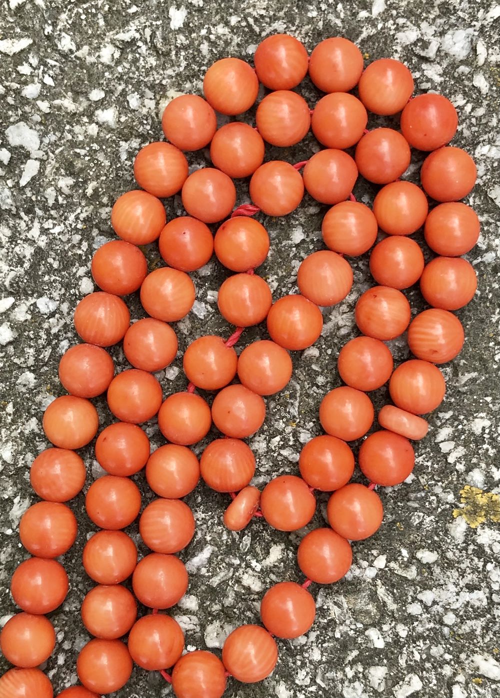 Чётки из природного неокрашенного коралла цвета сальмон (коралл скорее всего итальянского происхождения, но может быть и японский Сатсума). Длина нитки с кораллами 54см.+2см.коралловая висюлька., диаметр бусин 0,7см., общий вес 52гр.