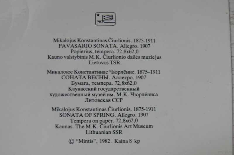 Чюрлёнис М. К., Соната весны; 1982, двойная, подписана (изд. Литва).