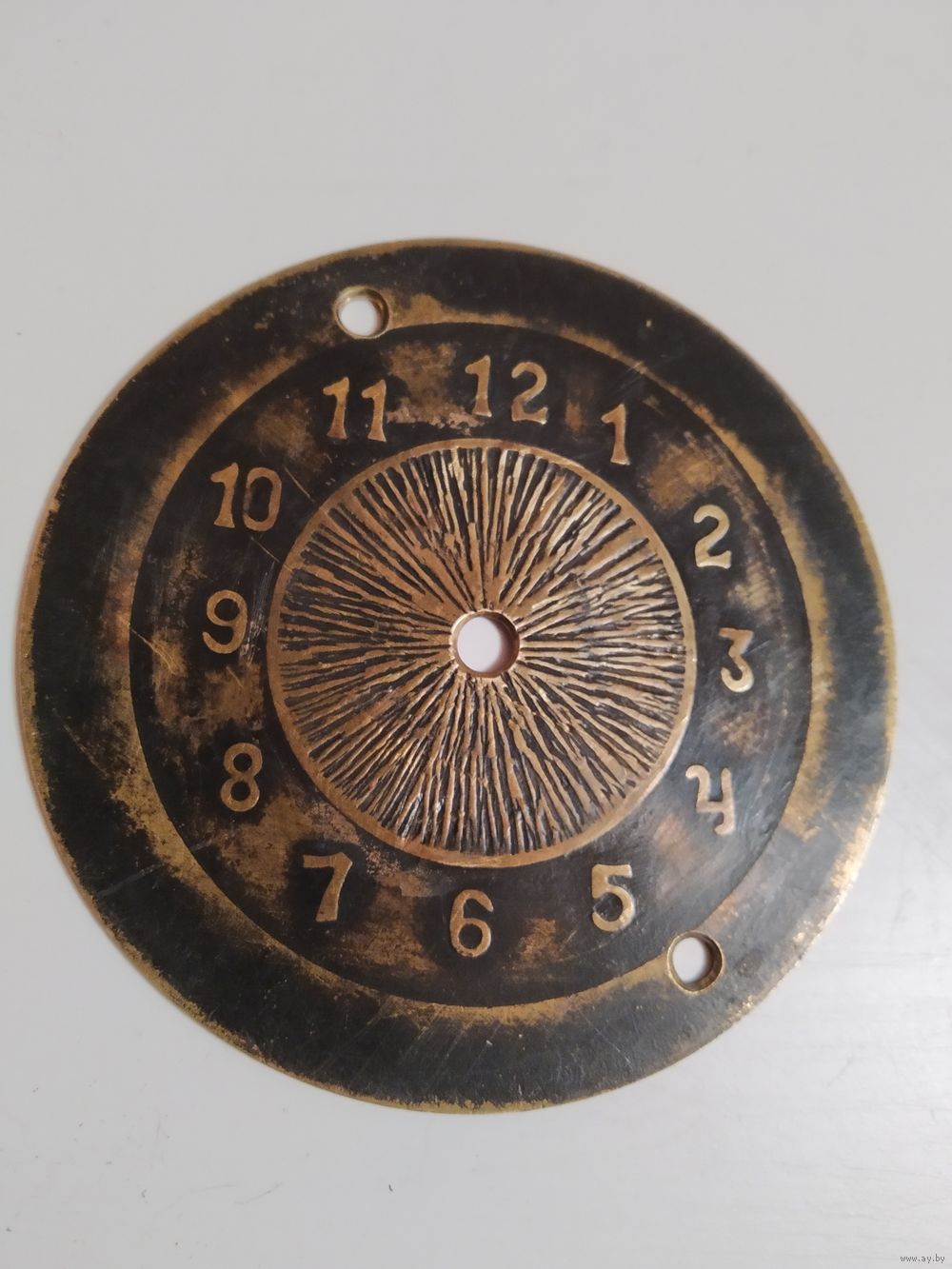 2 - Старинный латунный от немецких часов - Ø 6 6. (см. также фото 4), Цифры и орнамент в центре - рельефны, цена 10руб.;