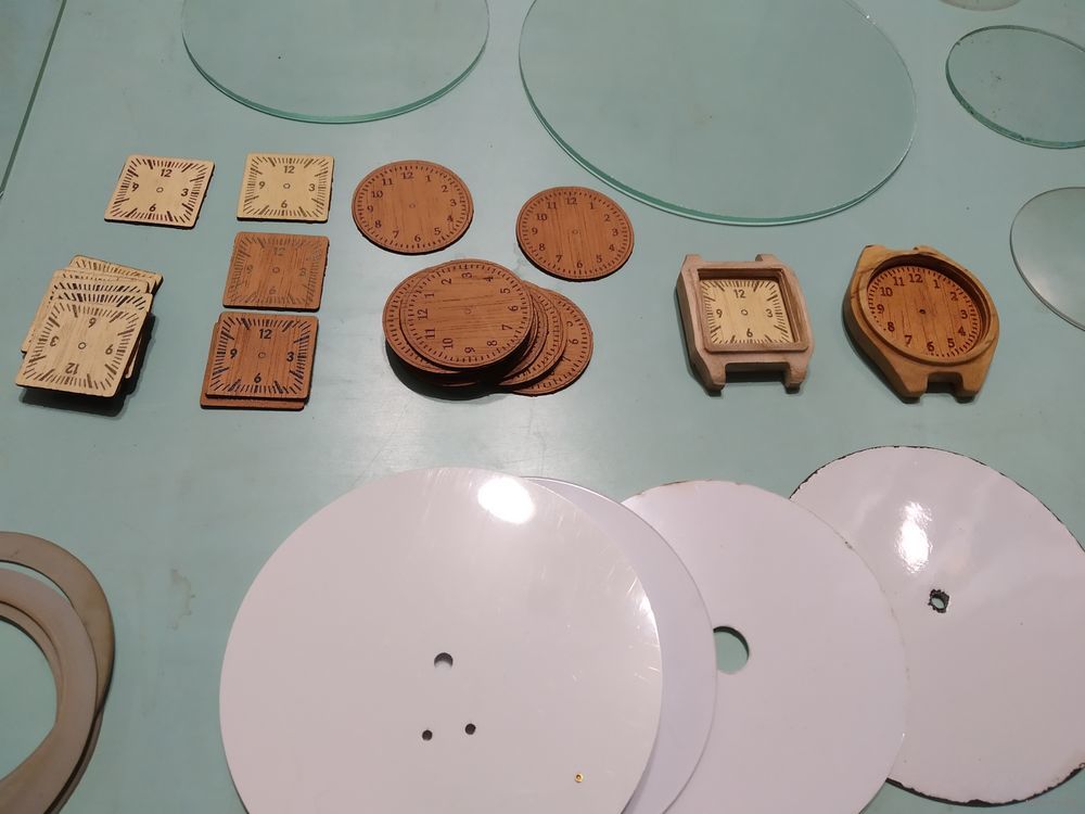 Внизу (см. также фото 5-6) - деревянные корпуса - заготовка под наручные часы. (Размеры овального 43х51. Диаметр под стекло - 35 мм. ; прямоугольного 33х44) Цена по 20 руб. и деревянные циферблаты Цена по 5руб. (Размеры круглого Ø 35мм; квадратного 36х36) Цифры и деления на циферблатах нанесены рельефно. С обратной стороны часов вставляется кварцевый или ещё какой механизм и получаются эксклюзивные наручные часы с деревянным корпусом.