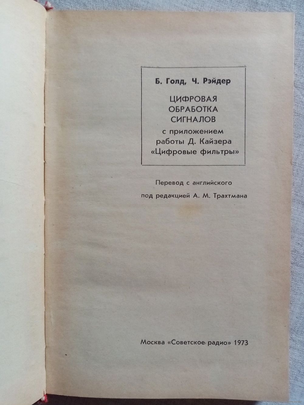 Цифровая обработка непрерывных сигналов и дискретных сигналов как новое техническое направление оформиролось менее 50 лет назад. Важную роль в деле становления этого направления сыграли работы Д. Кайзера "Цифровые фильтры" и Ю. Голда и Ч. Рэйдера "Цифровая обработка сигналов". О классическом характере этих работ говорит тот факт, что почти нет статей по цифровой обработке сигналов, в которых не было бы на них ссылки.