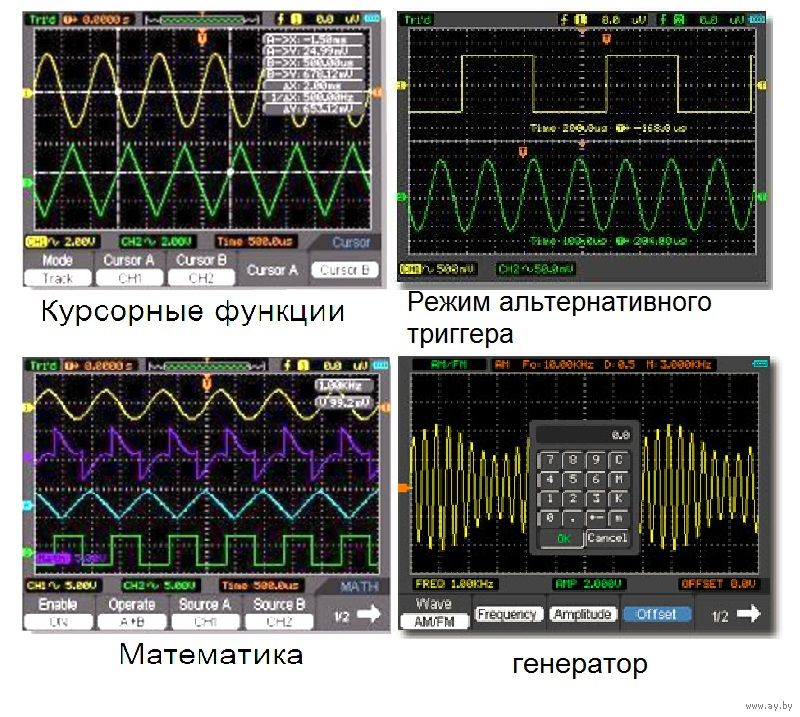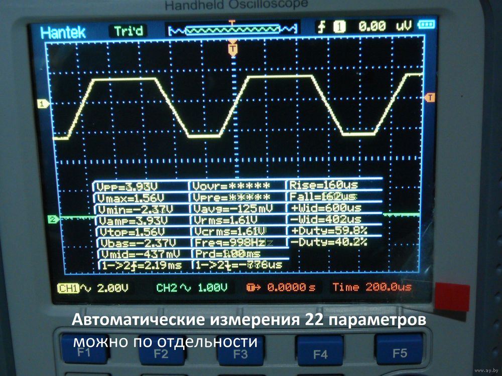 осциллограмм, авто. измерения , курсорные измерения .