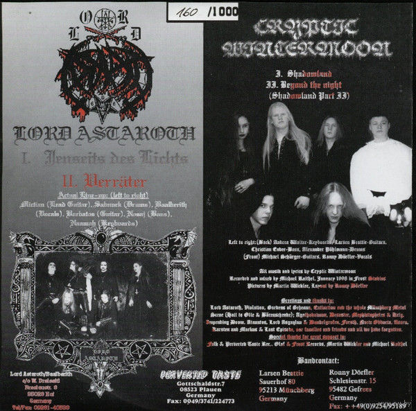 | Лимит - 1000 нумерованных копий (#536), красный винил. https://www.discogs.com/release/1904096-Cryptic-Wintermoon-Lord-Astaroth-Franconian-Frost | |