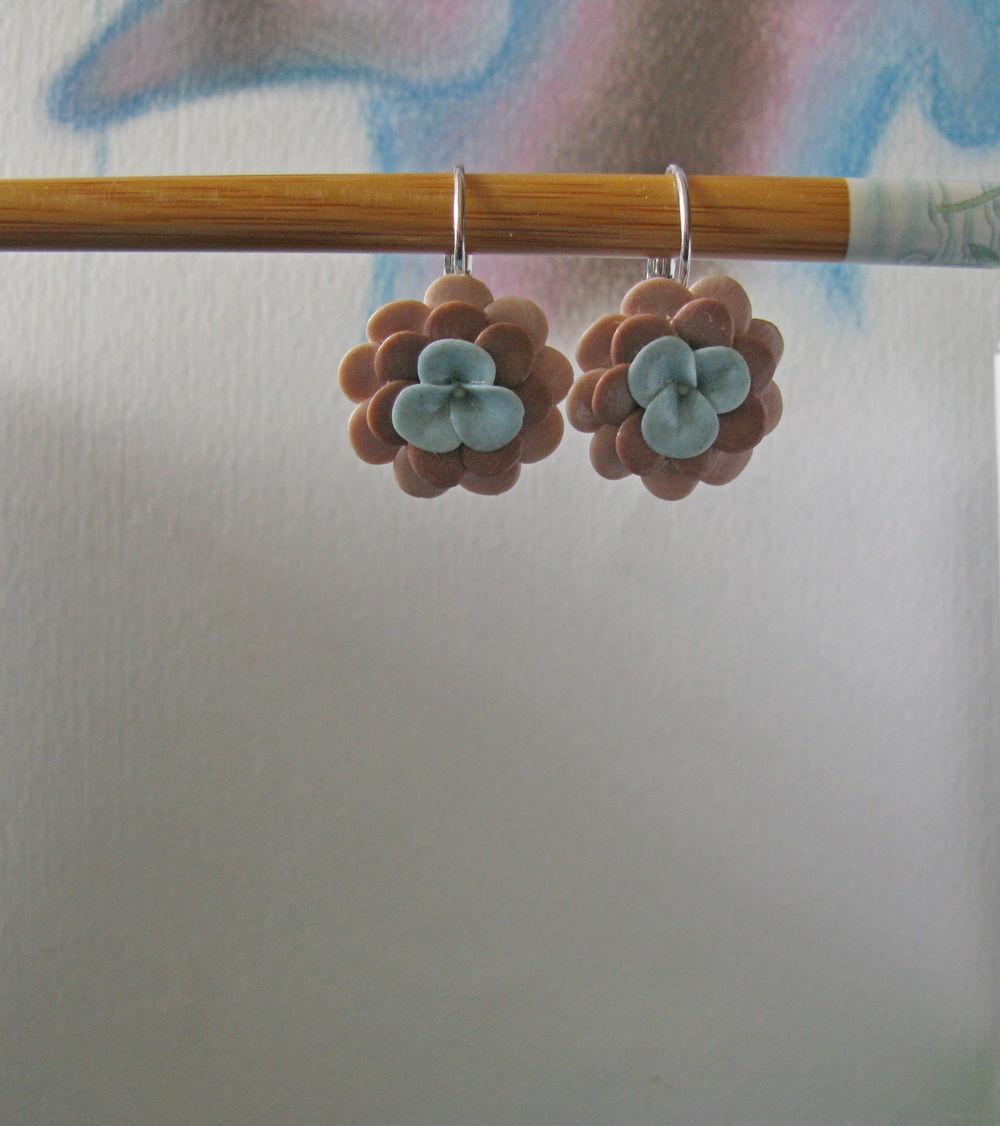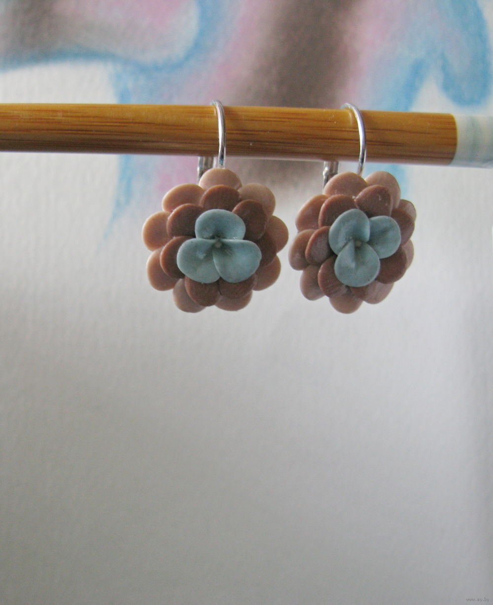 Новые. Ручная работа. Полимерная глина. Диаметр цветочка – 2 см. Длина со швензами – 3.8 см. Без повтора!