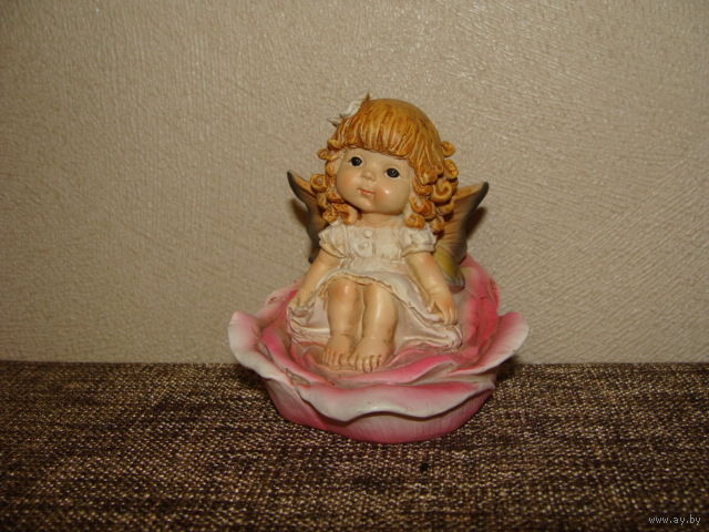 Миленькая девочка-цветочная фея на цветке (полистоун). Размер: 9 х 9см.