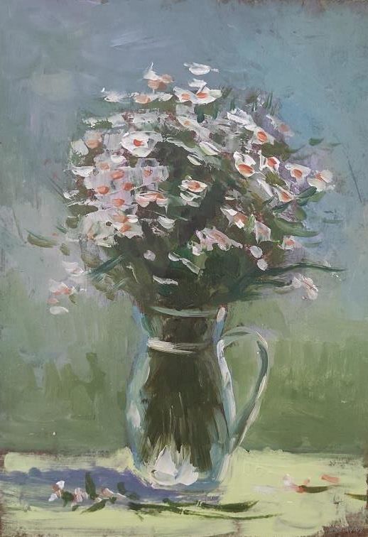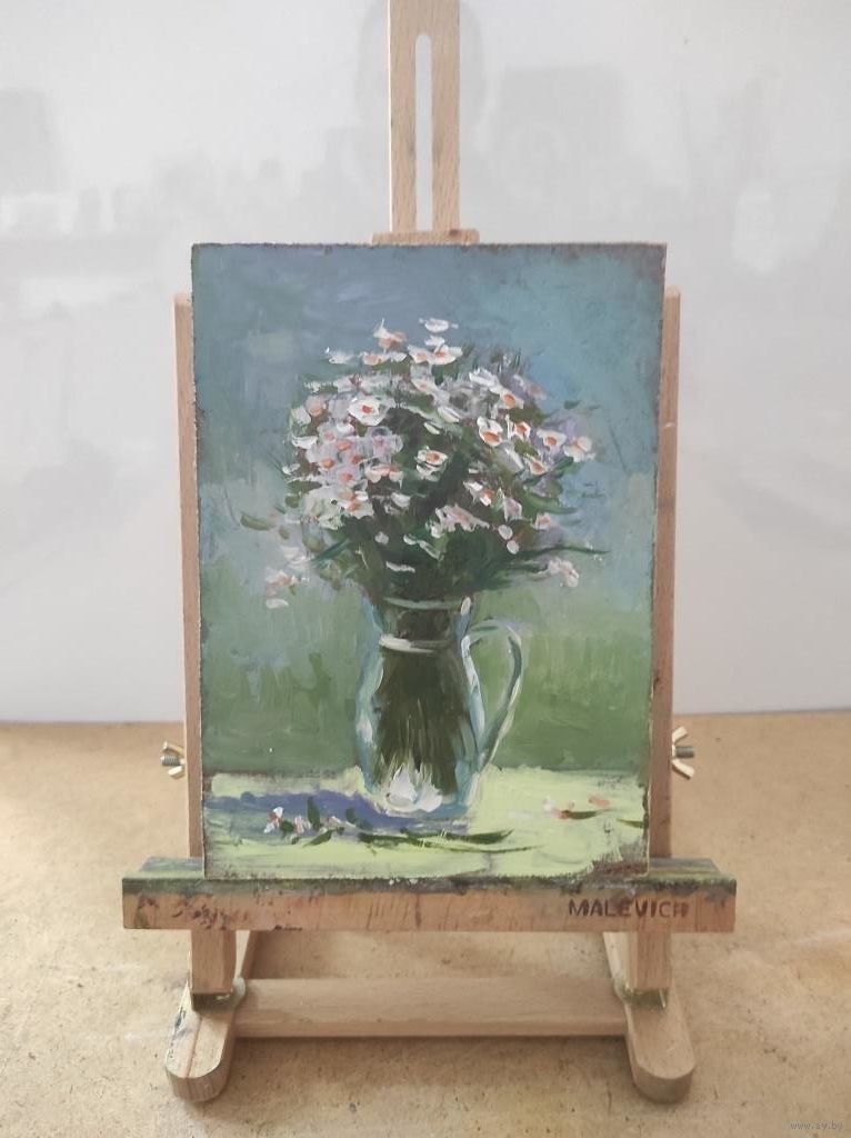 Картина "Цветы 18" двп, масло, размер 21х15см.