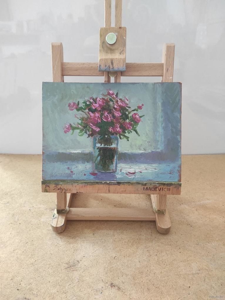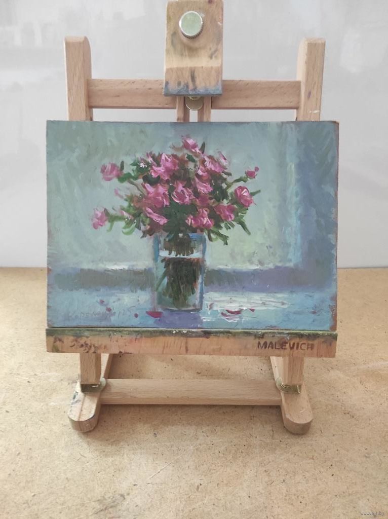 Картина "Цветы 21" двп, масло, размер 15х21см.