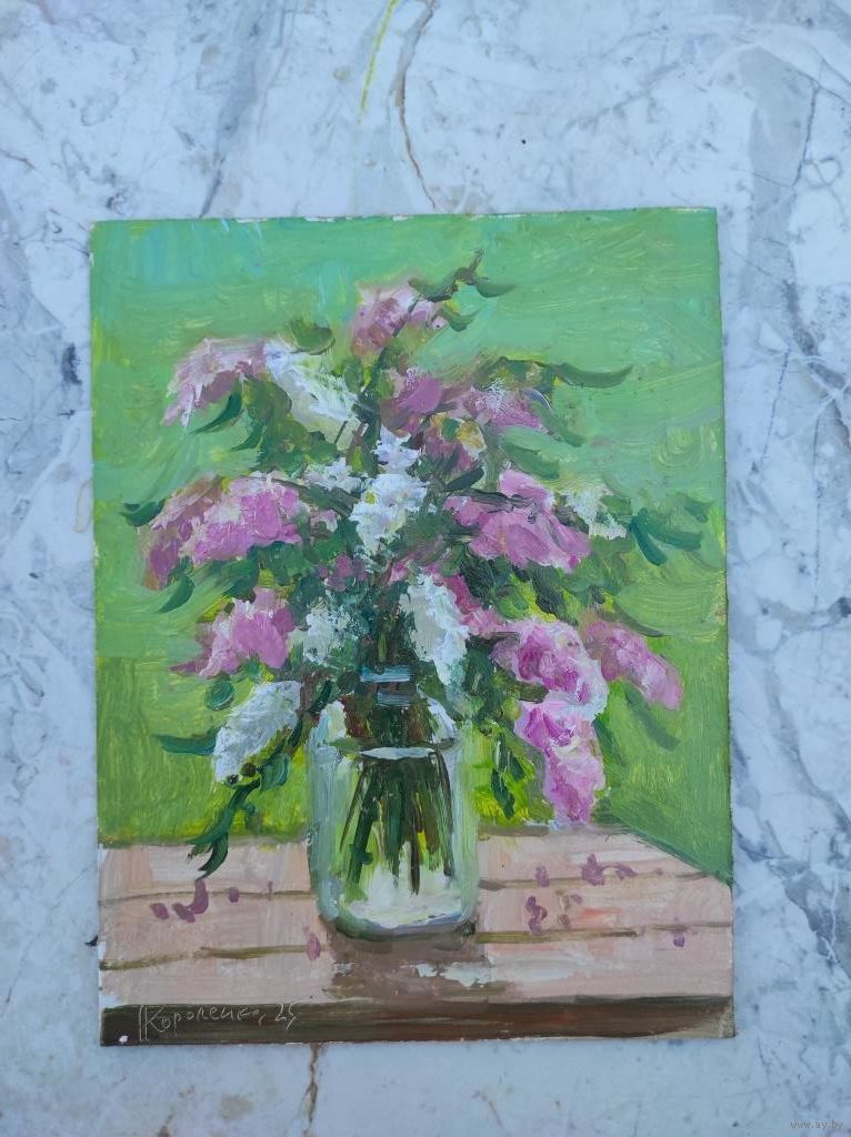 Картина "Цветы 22", двп, масло, размер 23х18см.
