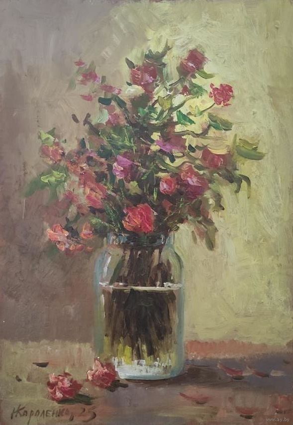 Картина "Цветы 4" двп, масло, размер 30х21см.