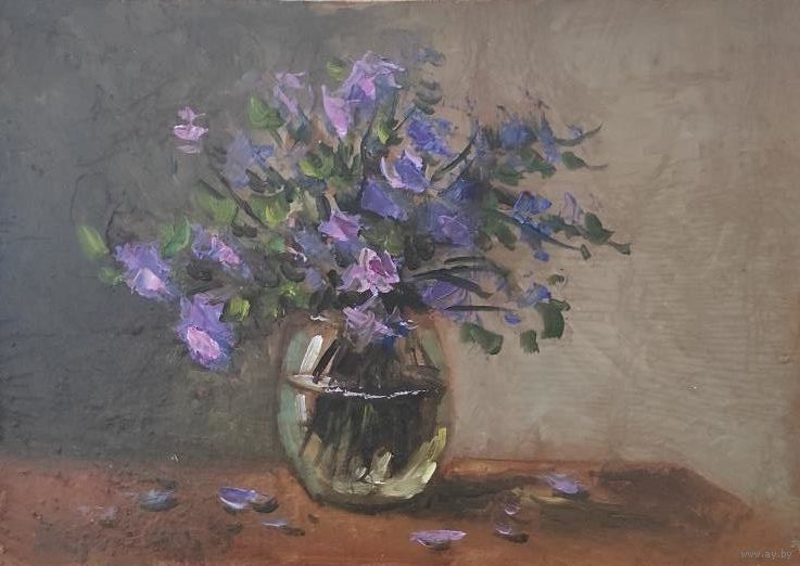 Картина "Цветы 7" двп, масло, размер 21х30см.