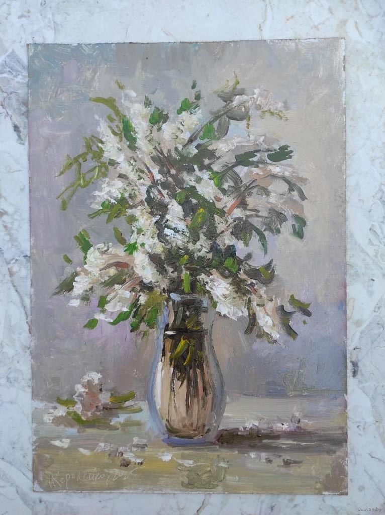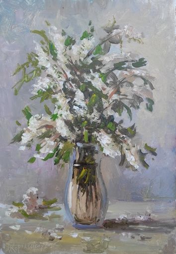 Картина " Цветы 8" двп, масло, р-р 30х21см, 2025г.