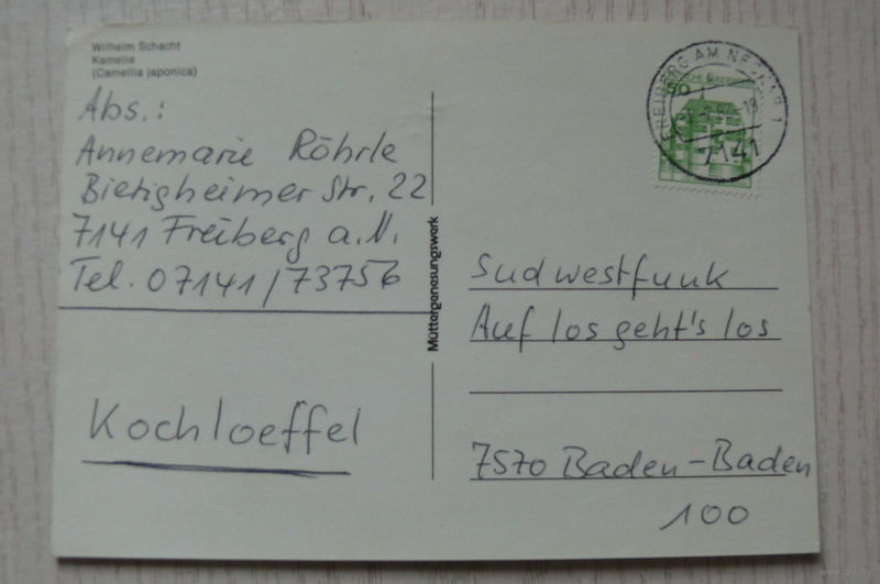 Цветы, розы; подписана, Германия, п/п 1982, марка.
