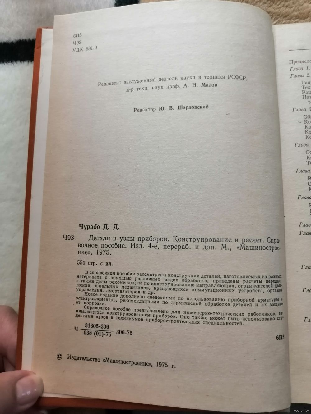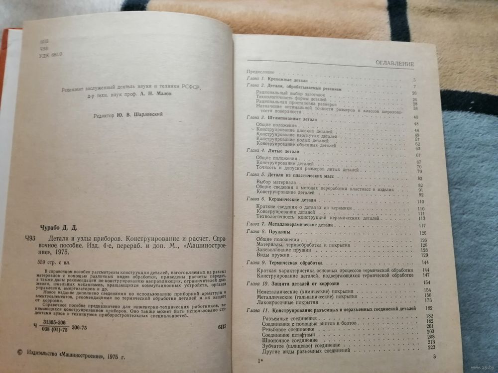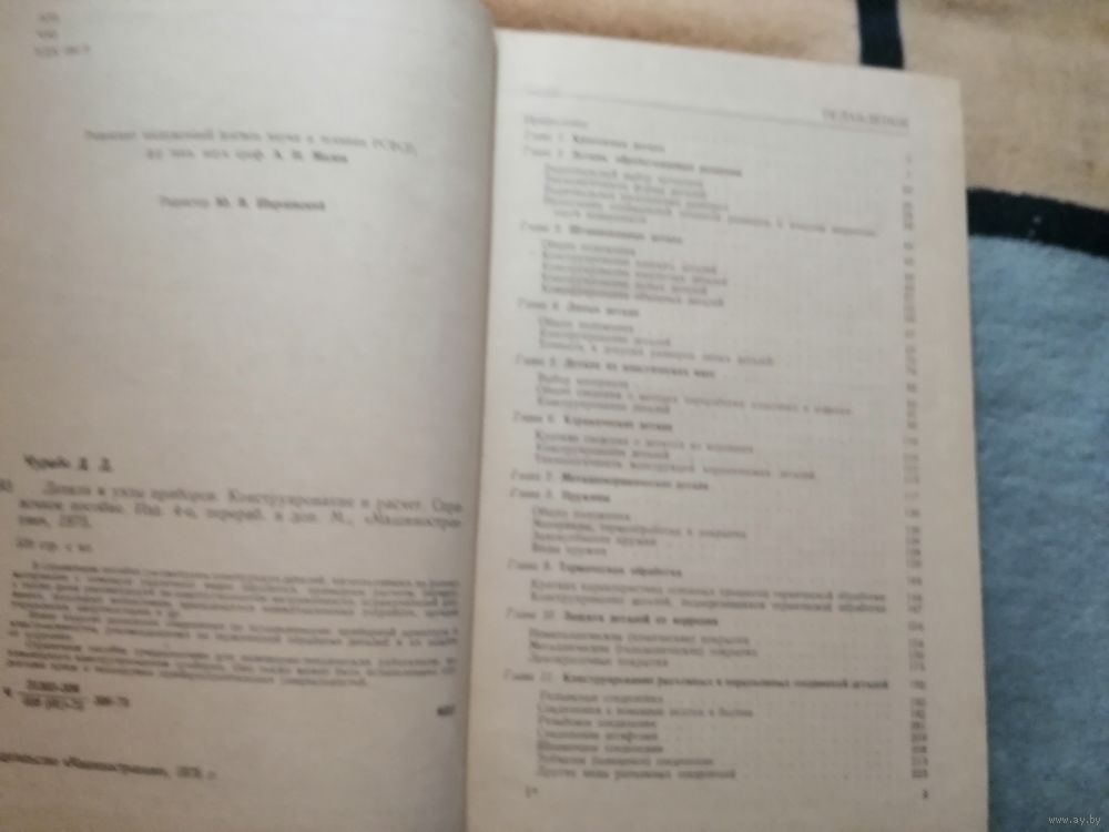 В справочном пособии рассмотрены конструкции деталей, изготавливаемых из разных материалов с помощью различных видов обработки, приведены расчеты передач, а также даны рекомендации по конструированию направляющих, ограничителей движения, шкальных механизмов, различных коммутационных устройств, органов управления, амортизаторов и др.