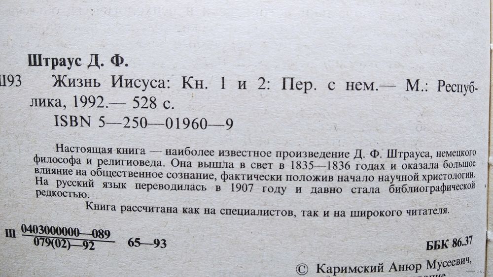 Д.Ф. Штраус. Жизнь Иисуса