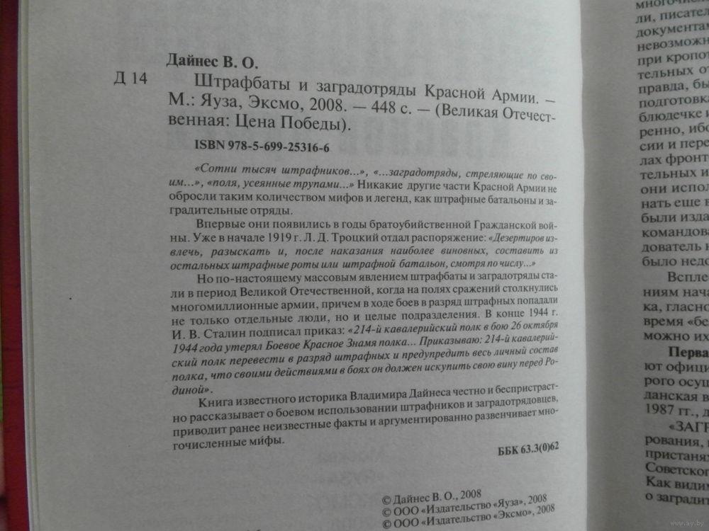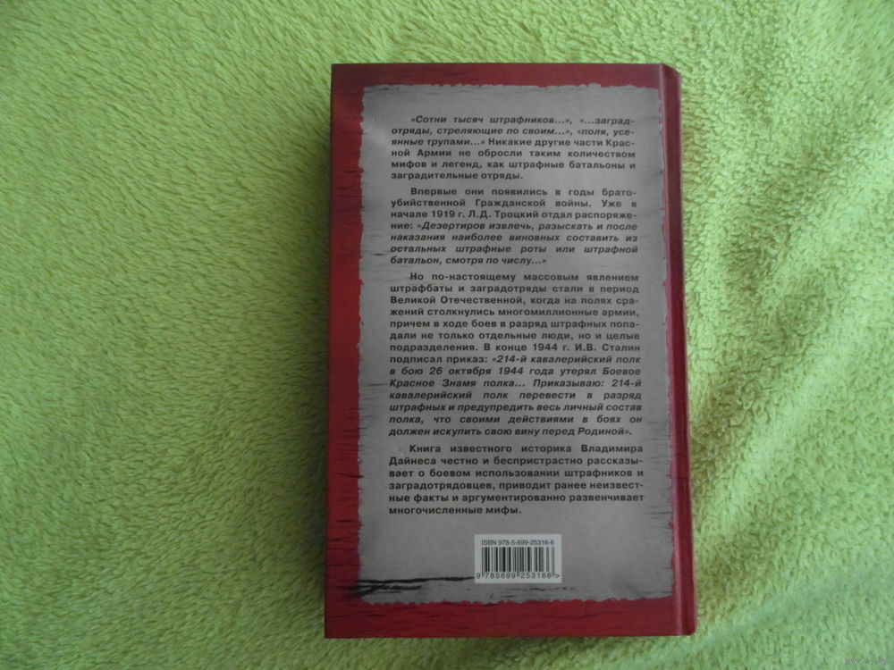 Лучшее отечественное исследование на самую закрытую, скандальную и табуированную тему! Вся правда о заградотрядах и штрафбатах Красной Армии! Впервые созданные еще в годы братоубийственной Гражданской войны, эти части стали по-настоящему массовым явлением во время Великой Отечественной, когда счет штрафников шел на десятки тысяч. Их боевое применение до сих пор остается одной из самых темных, спорных и малоизученных страниц истории - пожалуй, ни одна другая тема не породила столько мифов, не обросла таким количеством слухов и легенд: `смертники из штрафбатов`, `заградотряды, стреляющие по своим`, `поля, усеянные трупами` и т. д. и т. п. Это фундаментальное исследование, основанное на недавно рассекреченных архивных материалах и многочисленных свидетельствах ветеранов, ставит точку в данном вопросе, развенчивая спекулятивные мифы о заградотрядах и штрафбатах.... ...Сотни тысяч штрафников..., ...заградотряды, стреляющие по своим..., поля, усеянные трупами... Никакие другие части Красной Армии не обросли таким количеством мифов и легенд, как штрафные батальоны и заградительные отряды. Впервые они появились в голы братоубийственной Гражданской войны. Уже в начале 1919 г. Л. Д. Троцкий отдал распоряжение: «Дезертиров извлечь, разыскать и, после наказания наиболее виновных, составить и? остальных штрафные роты или штрафной батальон, смотря по числу...» Но по-настоящему массовым явлением штрафбаты и заградотряды стали в период Великой Отечественной, когда на полях сражений столкнулись многомиллионные армии, причем в ходе боев в разряд штрафных попадали не только отдельные люди, но и целые полразделения. В конце 1944 г. И. В. Сталин подписал приказ: «214-й кавалерийский полк в бою 26 октября 1944 года утерял Боевое Красное Знамя полка... Приказываю: 214-й кавалерийский полк перевести в разряд штрафных и предупредить весь личный состав полка, что своими действиями в боях он должен искупить свою вину перед Родиной». Книга известного историка Владимира Дайнеса честно и беспристрастно рассказывает о боевом использовании штрафников и заградотрядовцев, приводит ранее неизвестные факты и аргументированно развенчивает многочисленные мифы.