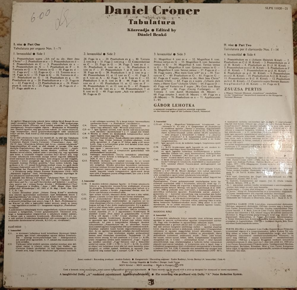 Daniel Croner - Gabor Lehotka, Zsuzsa Pertis - Tabulatura. (2lp)